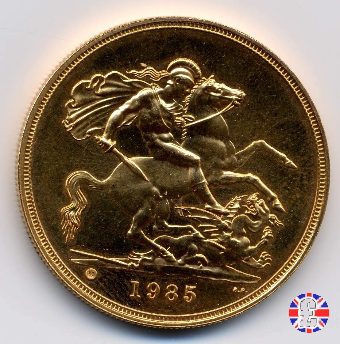 5 sovereigns - primo tipo coronata anziana (1985 - Royal Mint, Llantrisant) Verso | DIERRESAV | Fri 6/09/13 - 09:16 | ||