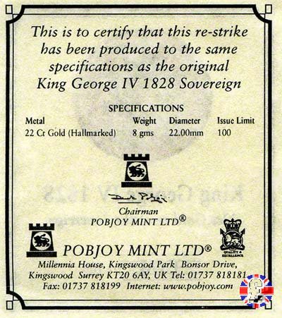 1 sovereign - testa nuda e stemma coronato (1828 - Pobjoy Mint) | CHARD`S COIN WEB SITES | Fri 6/09/13 - 09:40 | ||