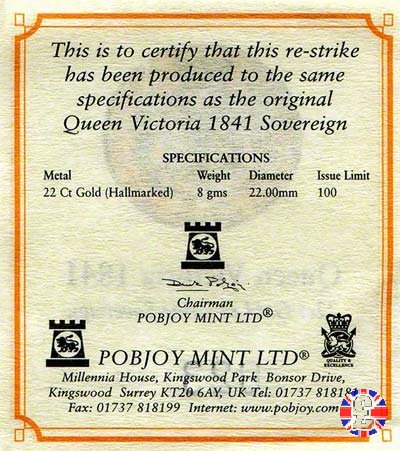 1 sovereign - primo tipo giovane e stemma (1841 - Pobjoy Mint) | CHARD`S COIN WEB SITES | Fri 6/09/13 - 09:43 | ||
